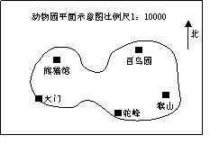 (2)百鸟园在大门的北偏东 方向上,到大门的图上距