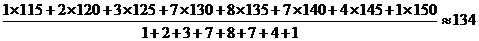 3个人每分钟跳绳125次,7个人每分钟跳绳130次,8个人每分钟跳绳135次.7个人每分钟跳绳140次,4个人每分钟跳绳145次,1个人每分钟跳绳150次.所以这些学生每分钟跳绳的平均次数是