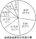 (2)哪两个洲的面积之和最接近地球陆地面积的一半?