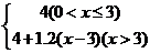 16、漳州市出租车计费标准如下,行程不超过3千米收费4元,超过3千米部分按每千米1.2元计费,车费y和行驶路程x之间的函数关系式是( )