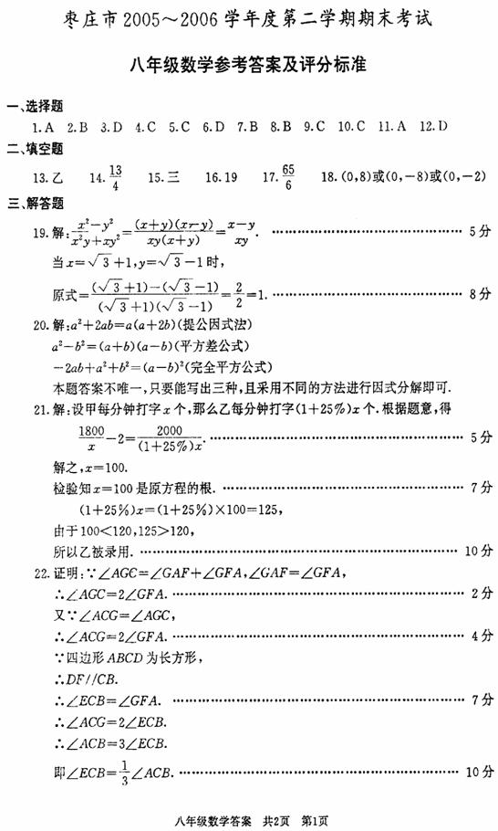19.(本题满分8分)