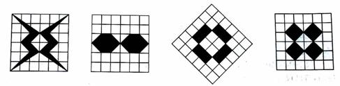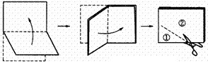 将一张矩形纸对折再对折(如图),然后沿着图中的虚线剪下,得到①、②两部分,将①展开后得到的平面图形是、( )
