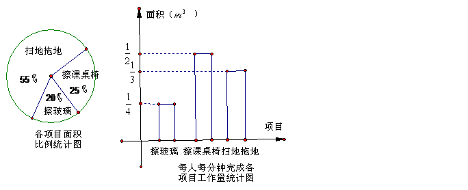 从上述统计图中可知:擦玻璃,擦课桌椅、扫地拖地的面积分别是_________