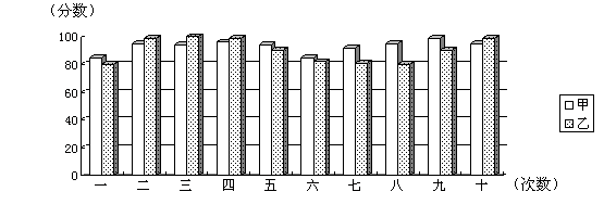 25、[2005佛山中考题] 某校为选拔参加2005年全国初中数学竞赛的选手,进行了集体培训.在集训期间进行了10次测试,假设其中两位同学的测试成绩如下面的图表所示: