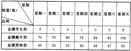 12.小红的奶奶开了一个金键牛奶销售店,主要经营“金键学生奶”、“金键酸牛奶”、“金键原味奶”,可奶奶经营不善,经常有品种的牛奶滞销(没卖完)或脱销(量不够),造成了浪费或亏损,细心的小红结合所学的统计知识帮奶奶统计了一个星期牛奶的销售情况,并绘制了下表: