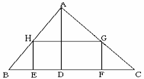 19.在△ABC中有一内接矩形,矩形的一边EF在BC上,两顶点H、G分别在AB、AC上,若HE:HG=3:4,BC=20cm,三角形的高AD=15cm,求矩形的两邻边长。