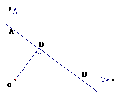 与两坐标轴分别相交于点A、B,作OD⊥AB于D。