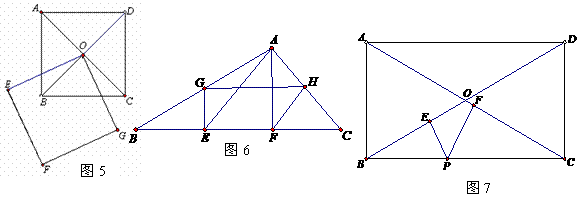 15.如图5,正方形ABCD的对角线相交于点O,点O是正方形EFGO的一个顶点,已知这两个正方形的边长均为4,则当正方形EFGO绕点O转动时,两个正方形重叠部分的面积为_______.
