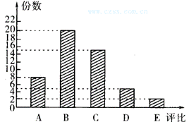 (3)学生会共收到调查报告1000份,请估计该校有多少份调查报告的评比为E? ![]()
