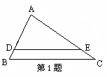 1.如图,D、E是三角形ABC中边AB、AC上的点,DE∥BC,已知AB=8cm,AC=12cm,BD=3cm,则AE= ,EC= .