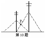 10.相邻两根电杆都用钢索在地面上固定,如图,一根电杆钢索系在离地面4米处,另一根电杆钢索系在离地面6米处,则中间两根钢索相交处点P离地