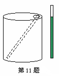 11.一个直立的油桶高0.8米,在顶部的一个开口中将一根长1米的木杆斜着插入桶内,上端正好与桶面相平,抽出后看到杆上油浸到部分长0.8米,求油桶内油面的高度.