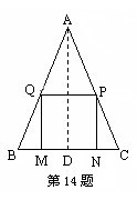 14.如图,正方形MNPQ的顶点在三角形ABC的边上,当边BC=a与高AD=h满足什么条件时,正方形MNPQ的面积是三角形ABC面积的一半?