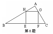 8.直角三角形ABC中∠A=90°,正方形EFGH的四个顶点在三角形的边上,如图.已知BE=6,FC=2,则正方形EFGH的面积是( ).