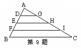9.如图,在△ABC中,AD=DE=EF=FB,DG∥EH∥FI∥BC,已知BC=a,则DG+EH+FI的长是( ).
