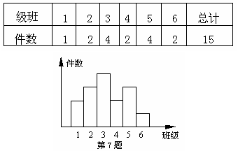 7.在学校开展的小制作评比活动中,二年级六个班都参加了比赛,根据他们上交作品的件数,绘制直方图如右.已知从左至右各长方形高的比为2∶3∶4∶2∶3∶1,小制作件数最多的三班上交了16件.经评选各班获奖件数如下表: