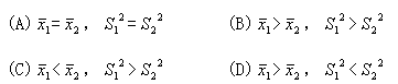 (A)S1<S2 (B)S1=S2 (C)S1>S2 (D)不能确定S1、S2的大小