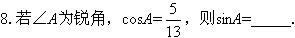 7.直角坐标系内,点A(2,-4)与B(-3,-2)的距离是 .