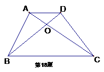 18、如图,梯形ABCD的对角线AC、BD交于点O,若SΔAOD:SΔACD=1:4,则SΔAOD:SΔBOC的值为----------------------( )