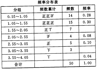 11.为了了解学校开展“尊敬父母,从家务事做起”活动的实施情况,该校抽取初二年级50名学生,调查他们一周(按七天计算)的家务所用时间(单位:小时),得到一组数据,并绘制成下表,请根据该表完成下列各题: