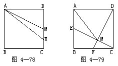 22.已知:如图4-79,正方形ABCD中,E,F分别为AB,BC中点,CE,DF交于M.求证:AM=AD.