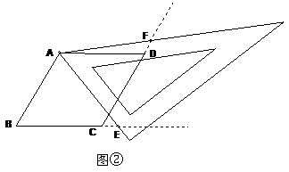 (3)当三角尺的两边分别与菱形的两边BC、CD的延长线相交于点E、F时(如图②),你在(1)中得到的结论还成立吗?请简要说明理由.