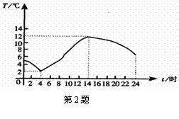 2、如图2所示,某市2001年冬季某一天的气温随时间变化而