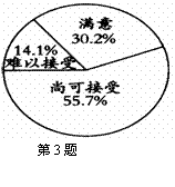 3、2001年中国人民银行统计司就城镇居民对物价水平满意程度进行了抽样调查,结果如右图.据此,可估计2001年城镇居民中对物价水平表示认可的约占 %。