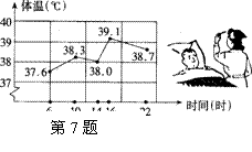 下图是护士统计一位病人的体温变化图,这位病人中午12时的体温约为( )