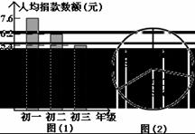 2003年我国遭受到非典型肺炎传染性疾病的巨大灾难,全国人民万众一心,众志成城,抗击“非典”.图(1)是我市某中学“献爱心,抗非典”自愿捐款活动学生捐款情况制成的条形统计图,图(2)是该中学学生人数比例分布(已知该校共有学生1450人).