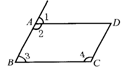 (A)∠1+∠2=180°;(B)∠2+∠3=180°;(C)∠3+∠4=180°;(D)∠2+∠4=180°