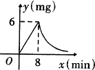 (本题共8分)为了预防流感,某学校对教室采用药熏消毒法进行消毒,已知药物燃烧时,室内每立方米空气中的含药量y(mg)与时间x(min)成正比例,药物燃烧完后,y与x成反比例(如图所示).现测得药物8min燃毕,此时室内空气中每立方米的含药量为6mg,请根据题中所提供的信息,解答下列问题: