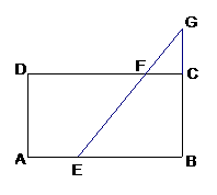 3、如图,矩形ABCD中,AD=4,AB=7, EF分别交AB、CD及BC的延长线于点E、F、G,且∠G=45°。