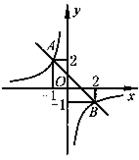 如右图,一次函数与反比例函数的图象相交于A、B两点,则使反比例函数的值小于一次函数的值的