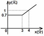 如图,表示在某公用电话亭打电话时,需付电话费y(元)与通话时间x(分钟)之间的函数关系,如果小明付了2.2元的通话费,那么他的通话时间是 分.