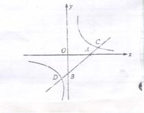 24. (8分)如图10,一次函数的图象与x轴,y轴交于A,B两点,与反比例函数的图象交于C,D两点.如果A点的坐标为(2,0),点C,D分别在第一,三象限,且OA,OB=AC=BD,试求一次函数与反比例函数的解析式.