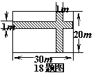 18如图在宽为20m,长为30m的矩形地面上修建两条同样宽的道路,余下部分作为耕地. 根据图中数据,计算耕地的面积为……………………( )
