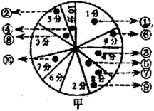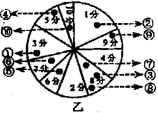 6. (8分)甲、乙两名同学进行投掷飞镖比赛,每人各投掷10次,中靶情况如图所示.