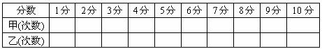 ⑵在下图的网格图中,画出甲、乙投掷飞镖成绩的折线图