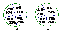6、.右图是甲、乙两户居民家庭全年支出费用的扇形统计图。