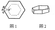 将一块正六边形硬纸片(图1),做成一个底面仍为正六边形且高相等的无盖纸盒(侧面均垂直于底面,见图2),需在每一个顶点处剪去一个四边形,例如图1中的四边形AGA/H,那么∠GA/H的大小是