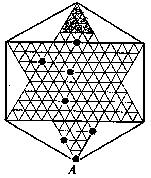 5、右图是跳棋盘,其中格点上的黑色点为棋子,剩余的格点上没有棋子,我们约定跳棋游戏的规则是:把跳棋棋子在棋盘内沿直线隔着棋子对称跳行,跳行一次称为一步。已知点A为己方一枚棋子,欲将棋子A跳进对方区域(阴影部分的格点),则跳行的最少步数为( )