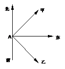 甲、乙两船上午11时同时从港口A出发,甲船以每小时20海里的速度向东北方向航行,乙船以每小时15海里的速度向东南方向航行,求:下午1时两船之间的距离。(10分)