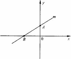 (本题8分)如图,直线m与x轴、y轴分别交于点B、A,且A、B两点的坐标分别为A(0,3)、B(-4,0)。