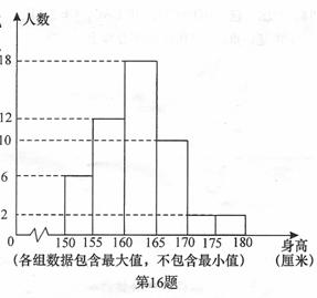 16、如图是初二某班全体同学身高情况 的频数分布直方图 ,