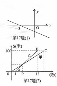 17、(1) 如图是函数 y=kx+b 的图象 , 它与 x 轴的交点坐标