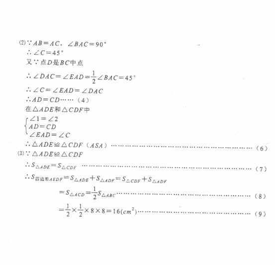 CDF, (3) 若 AB=8cm, 求四边形 AEDF 的面积 .