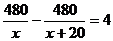 8、某农场开挖一条480米的渠道,开工后,每天比原计划多挖20米,结果提前4天完成任务,若设原计划每天挖