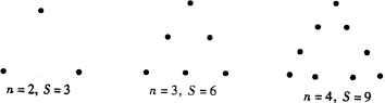 14、如图所示,下列每个图是由若干盆花组成的形如三角形的图案,每条边(包括两个顶点)有n盆花,每个图 案花盆总数是S,按此推断S与n的关系式为( )