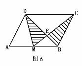 7.如图6,M为□ABCD的边AB的中点,CM交BD于E,则图中阴影部分的面积与□ABCD的面积比是( )